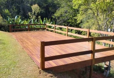 Os decks de madeira da Center Portas são perfeitos para transformar áreas externas como jardins, varandas e piscinas. Com um design elegante e resistente, são produzidos com madeiras de alta performance, oferecendo durabilidade, conforto e beleza. A solução ideal para quem busca criar ambientes acolhedores e funcionais ao ar livre.